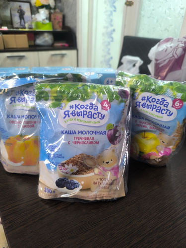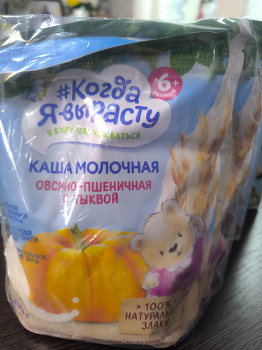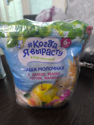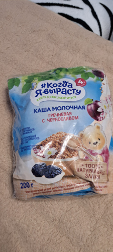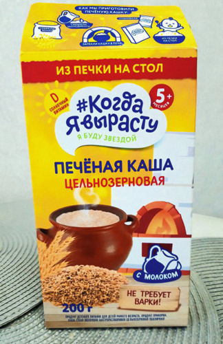 #Когда Я вырасту - первый российский бренд для заботливых мам, которые выбирают для своих малышей полезные и безопасные продукты! Молочная быстрорастворимая каша "5 злаков" - это сбалансированный и полезный продукт детского питания, рекомендованный для питания детей старше 4 месяцев. Каша обогащена пребиотиком, для улучшения пищеварения, а так же витаминами и минеральными веществами, так необходимыми малышу в этом возрасте. Каша производится на новейшем современном заводе с соблюдением высоких требований к качеству детского питания. Состав: мука гречневая, молоко сухое цельное, пюре черносливовое, сахарная пудра, пребиотик-инулин, соль, витаминно-минеральный премикс (С (L-аскорбиновая кислота), железа (II) фумарат, E (DL-альфа-токоферола ацетат), ниацин (никотинамид), цинка оксид, пантотеновой кислота (D-пантотенат кальция), B6 (пиридоксин гидрохлорид), B2 (рибофлавин), В1 (тиамина мононитрат), A (ретинола ацетат), фолиевая кислота, йодид калия, D (D3 холекальциферол), биотин (D-биотин), K (филлохинон), B12 (цианкобаламин)).Способ приготовления: налейте 80 мл прокипяченной, а затем охлажденной до 40-50 ºС воды; постепенно добавьте в воду 20 г (4-5 столовых ложек без верха) сухой каши; тщательно перемешайте до однородной массы и остудите до температуры комфортной для кормления ребенка. Начинайте вводить кашу в прикорм постепенно с 1 чайной ложки готового продукта. После приготовления каши плотно закройте упаковку. Рекомендуется готовить кашу непосредственно перед каждым приемом пищи. Не подогревать в микроволновой печи.Не используйте остатки приготовленной каши для последующего кормления. Не оставляйте ребенка одного во время еды без присмотра!Упаковка: 200г. После вскрытия упаковку хранить плотно закрытой в сухом месте при комнатной температуре (не в холодильнике) не более 20 дней при температуре от +1 до +25°С и относительной влажности воздуха не более 75%, вдали от прямых солнечных лучей.Особенности:- Здоровое и полезное питание;- 100% натуральные злаки;- с черносливовым пюре;- высокое содержание сухого цельного молока;- не требует варки;- быстрорастворимая;- 13 витаминов, 4 минерала, пребиотик;- не содержит красителей, консервантов;- не содержит ГМО, крахмал;- без пальмового масла;- zip loсk для сохранения свойств продукта.