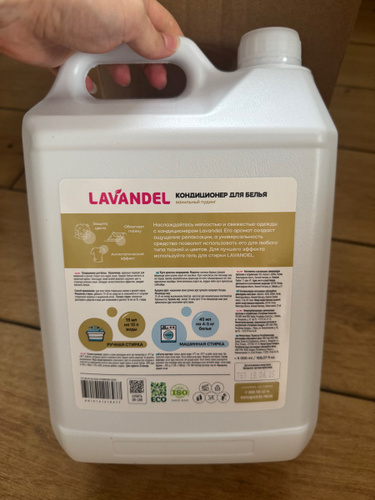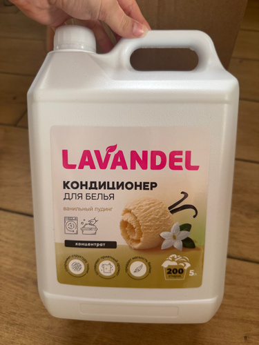Доставка по сроку, упаковка на фото- аккуратная плотная коробка замотана скотчем. Канистра запечатана мембраной. Сама канистра белая, довольно плотная, вполне может пригодиться для повторного использования для других целей, если собрать их сколько-то и разместить на полке кладовой или гаража. При открытии запах не сильный, сладковато- ванильный как и заявлено, приятный. Сам кондиционер не вода-очень сильно разбавленный кисель. Если вы переливаете в мЕньшую прозрачную ёмкость- белый цвет. После стирки запах слышен, но слабо. После сушильной машины запаха почти нет. Белье вроде мягкое, но после сушилки оно всегда такое. Купила этот и ещё один кондиционер на пробу, пока, после одной стирки толком не поняла- нравится или нет. Ждала от концентрата ( как заявлено) бОльшего запаха. Честно говоря немного разочарована, но, возможно, одной пробной стирки мало, чтобы составить объективное мнение. Стирала постельное хб белье комплектом, добавляла на стирку один большой мерный колпачок, там грамм 50-60. До этого использовала Линор-запах узнаваемый и довольно слышный после стирки на всю квартиру. Решила начать экономить и попробовать другие марки. Отзыв дополню после ещё некоторого времени использования на разных типах тканей и сушки на веревке. Кроме того, возможно, запах проявится в процессе использования постельного белья и от вещей в закрытом шкафу.