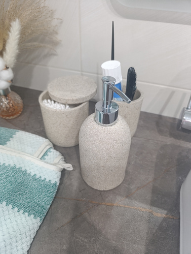 Коллекция STONE BLACK 1097247610 представлен в глубоком черном цвете, такой набор является популярным выбором среди тех, кто стремится к стильному и аккуратному оформлению своей ванной.