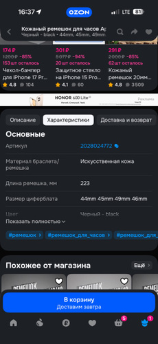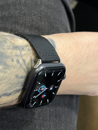 Кожаный ремешок для часов Apple Watch идеально подходит для моделей 40 мм 41 мм и 42 мм. Он выполнен из высококачественного материала с гладкой текстурой и аккуратной строчкой, что подчеркивает его стильный дизайн Apple Watch 42 mm. Внутренняя часть ремня отличается мягкостью и обеспечивает комфортное прилегание к запястью, предотвращая натирание при длительном ношении часов Apple Watch 41 mm. Классическая застежка из металла надежно фиксирует браслет Apple Watch 40 mm на руке, гарантируя удобство и безопасность использования. Элегантная поверхность гармонично сочетается с различными стилями — от делового до повседневного. Универсальная конструкция ремешка эпл вотч делает его совместимым с умными часами Apple Watch всех серий: от Series 3 до Series 11, SE2, SE3. Аксессуар станет отличным решением для тех, кто ценит утонченность и функциональность. Кожа отличается долговечностью и сохраняет презентабельный внешний вид даже при интенсивном использовании. Ремень Apple Watch 42mm подойдет как для мужчин, так и для женщин, добавляя элегантности вашему образу.
