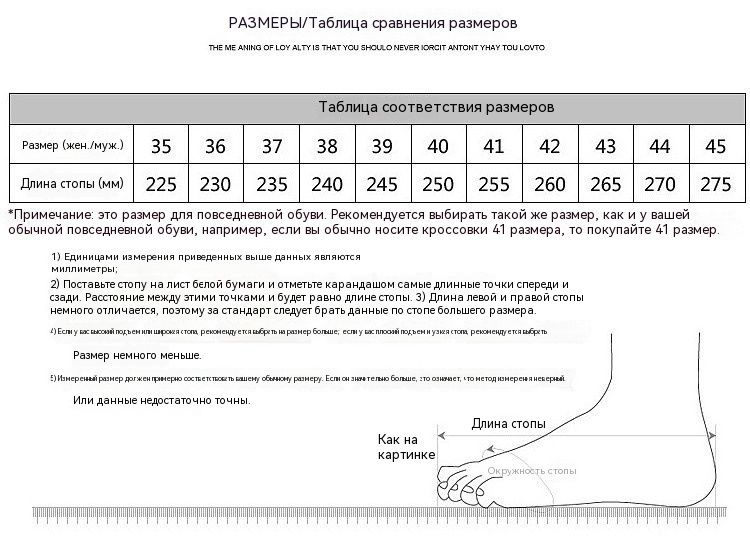Если вы не можете определить размер, вы можете посмотреть на этикетку с размером на вашей старой обуви.Наш размер соответствует глобальному универсальному размеру.Или свяжитесь с нами, чтобы мы помогли вам выбрать размер.Мы очень рады получить ваш запрос.
