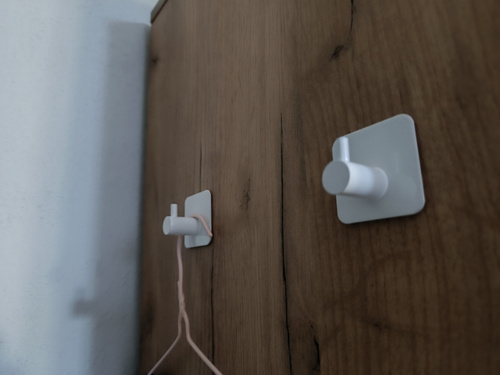Для надежного крепления на стену или мебель, её поверхность необходимо тщательно очистить и обезжирить. Затем снять защитную пленку и плотно прижать самоклеющийся крючок к стене на 1 минуту. Через 24 часа, когда клей хорошо схватится, изделие готово к использованию.