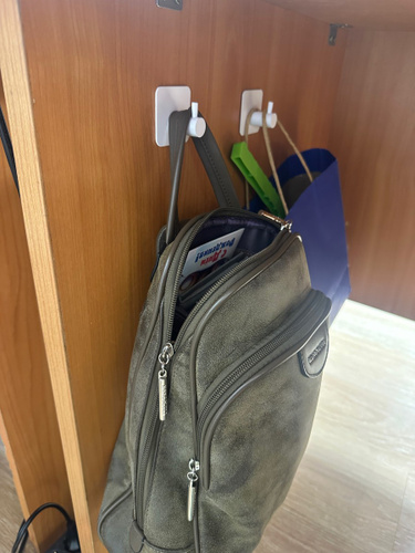 Надежность и универсальностьВыполнен из металла, поэтому прочен и легко выдерживает нагрузку до пяти килограмм. Подходит как настенный крючок для сумок и ключей, верхней одежды, на дверь, для полотенец и банного халата. Прекрасно заменяет вешалку или держатель. Легко и удобно клеится в душевой кабине для мочалок, на зеркало, плитку, мебель на кухне или в любой комнате.