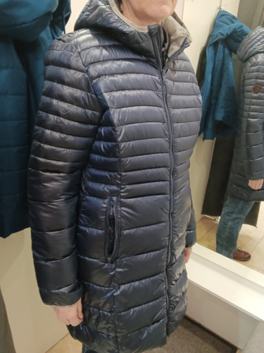 Легкая, воздушная куртка на синтепоне. На 48 размер подошла L. Жене понравилась. Для австралийской зимы, может и подойдет. Для нашей, один слой синтепона). Но пошита хорошо, ниток нигде не видел. Швы все обработаны. Со слов жены цвет меняется, при разном освещении. Не синий синий космос, а с отливом. Может это намек, на юг)))