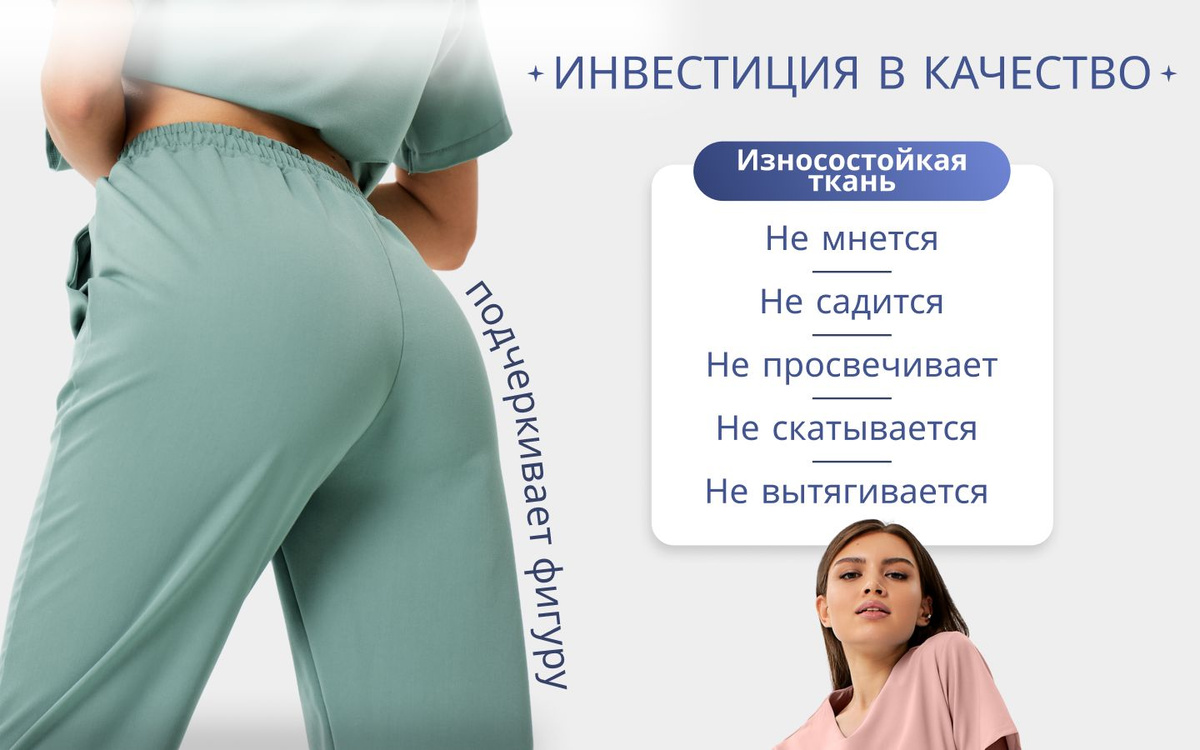 Отработала в хирургичке несколько смен, в восторге, качество превосходное, единственное, хоть у меня и широкие бедра, штаны все равно большеваты, было бы хорошо, если бы сделали резинку, которую можно будет регулировать