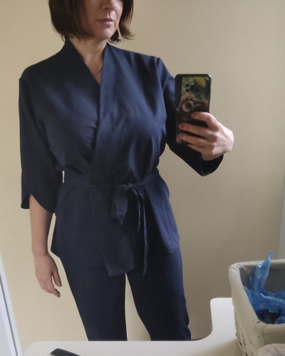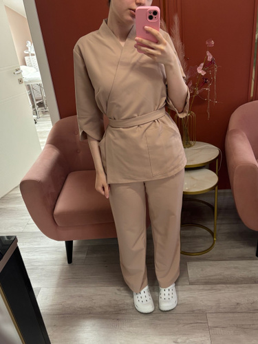 Классный костюм! Особенно за такую цену – это лучшее, что вы сможете найти. Ткань приятная, плотная, но при этом дышит; не сильно мнется, после стирки можно не гладить, а просто аккуратно развесить. Единственный минус – на мне самый маленький размер 42-44 и он мне большой, мой рост 164, вес 56. Завязки приходится обматывать вокруг себя, получается что-то... Читать полностью