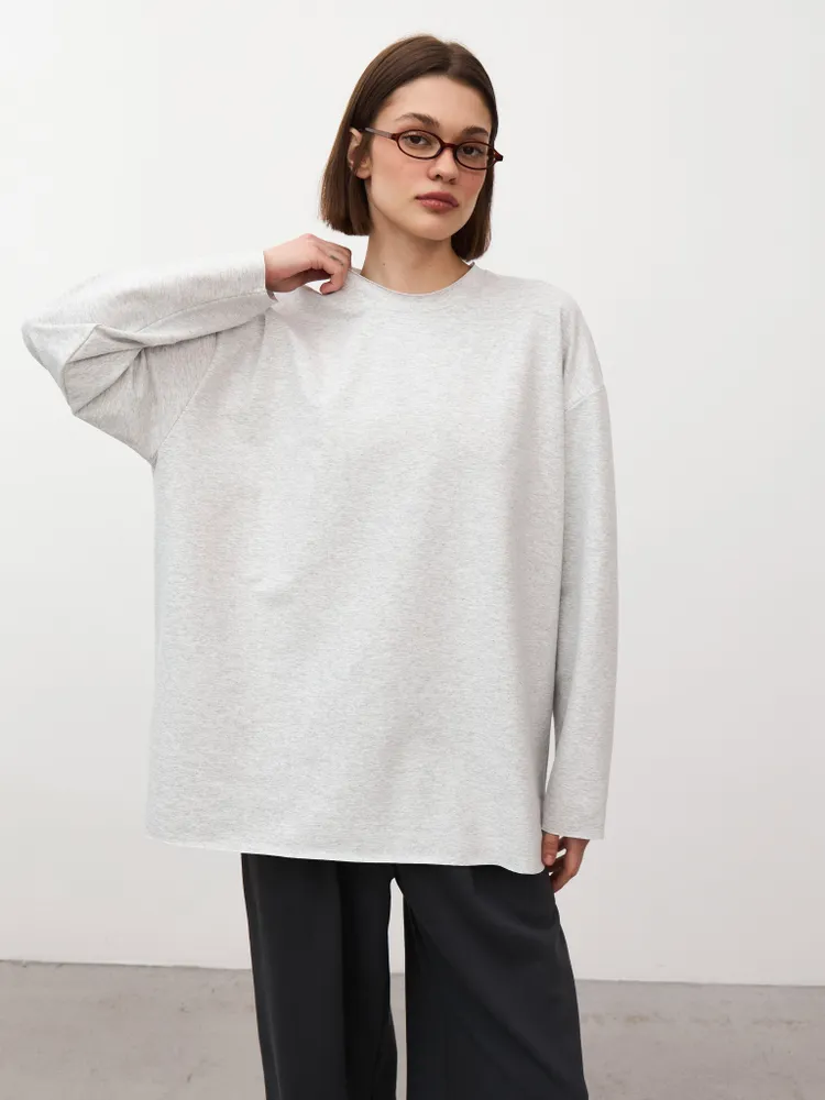 Покупала 3 лонгслива здесь, эта модель шире чем остальные, прям Овер)) ткань плотнее кулирки, края не обработанные, если нужно рукава покороче или длину- можно самой укоротить)
