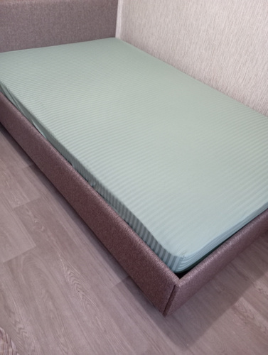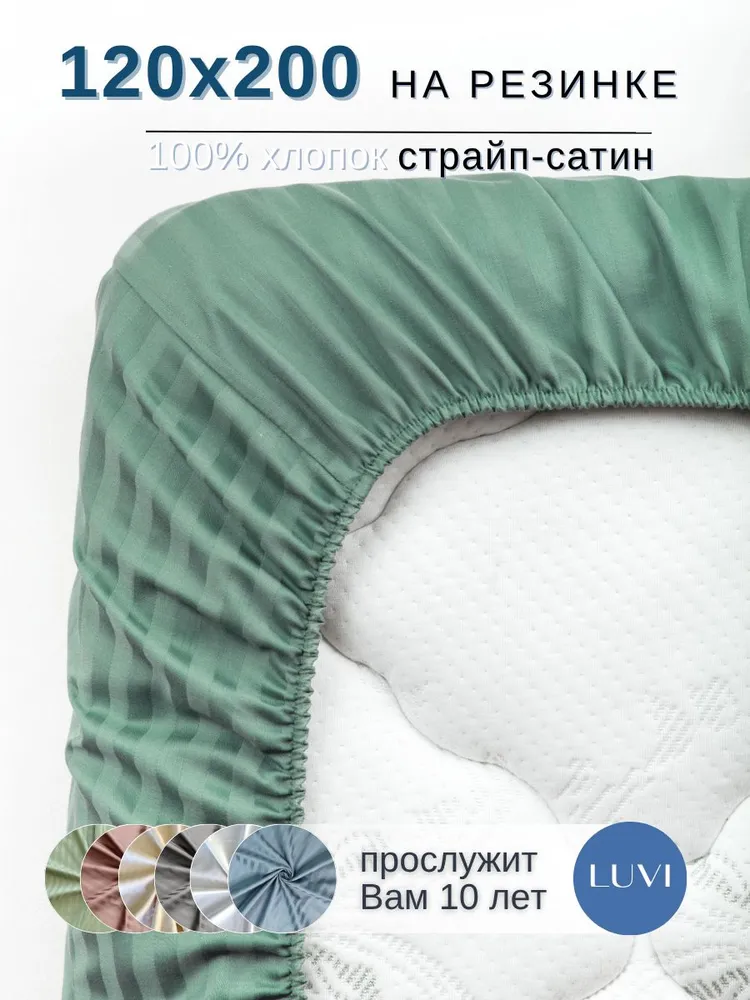 Полутороспальная простынь c резинкой, как в гостинице! На кровать 120*200 см. Высокое качество ткани и пошива. Высота борта универсальная 25 см, резинка прошита по всему периметру аккуратно, ровно и крепко - это позволит вам надежно зафиксировать простынь. Ширина полос - 1 см.