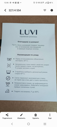 Простынь даст усадку до 4% - это естественный процесс для 100% натуральных тканей. Чтобы сохранить свой красивый внешний вид соблюдайте рекомендации по уходу.
