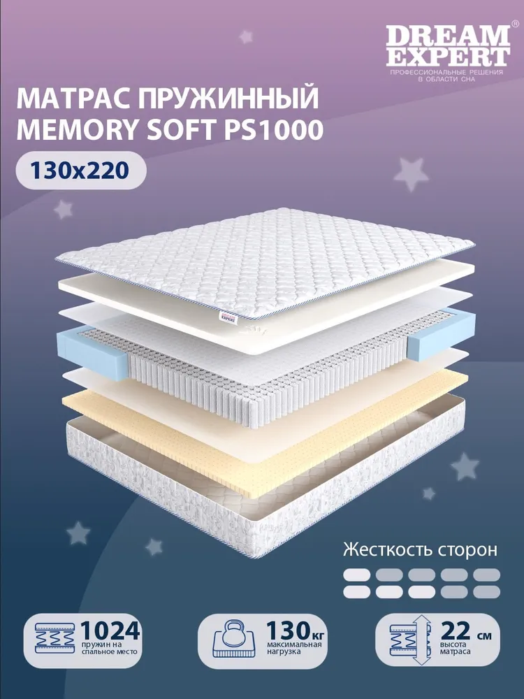 Memory Soft PS1000Анатомический пружинный матрас модели Memory Soft PS1000 производства DreamExpert – это идеальное сочетание натуральных и искусственных наполнителей, которое обеспечивает непревзойденный комфорт и оптимальную поддержку тела.