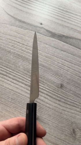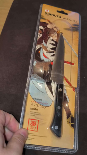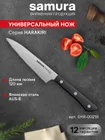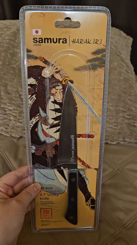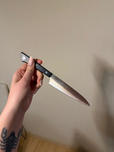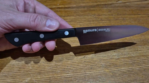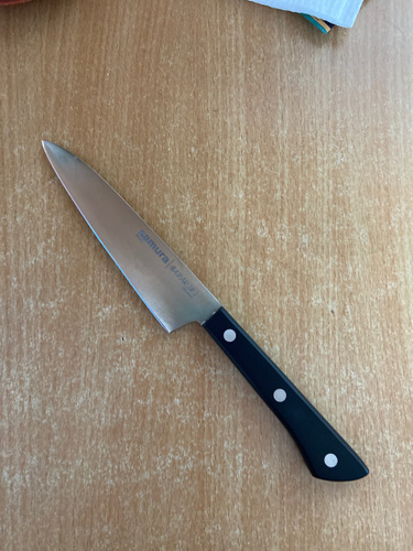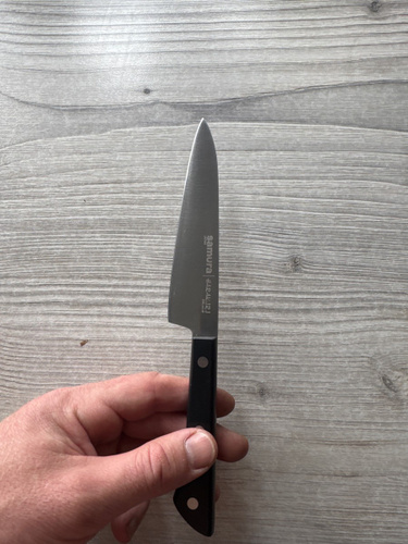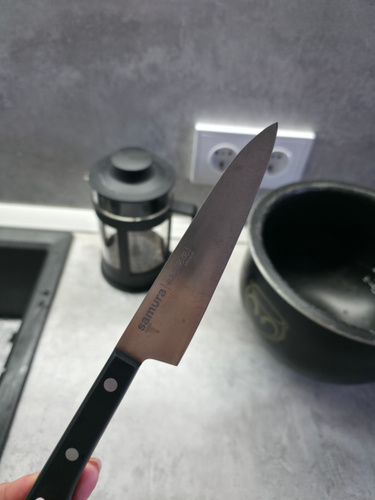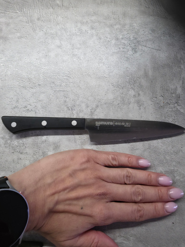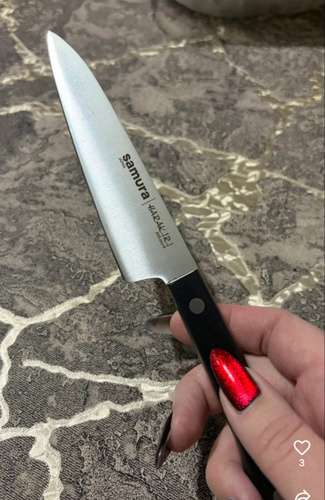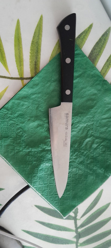 Овощной — самый компактный кухонный нож в наборе Самура. Коротким лезвием удобно чистить картофель, корнеплоды и другие овощи и фрукты. Узкий заостренный кончик легко справляется с вырезанием глазков, сердцевин, червоточин, фигурной резкой плодов. Лезвие короткое, что обеспечивает отличную управляемость и маневренность ножа, а относительно широким основанием клинка удобно нарезать мелкие продукты – зубчики чеснока или оливки, например. С уважением, Официальный дилер Samura