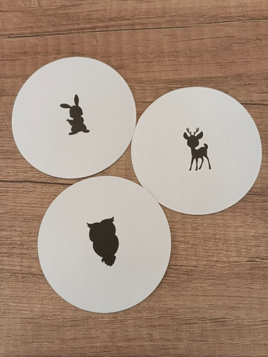у нас пришли 4 картинки: сова, енот, ежик, белка
