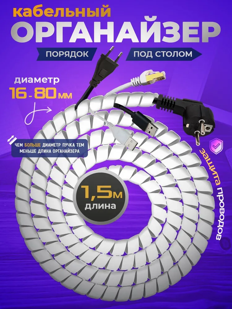 Эта спиральная обмотка обеспечивает дополнительную изоляционную защиту как от детского внимания ваших детей, так защитить держатель для провода от зажима, истирания, перегиба, абразии, защита проводов от излома, животных, агрессивных сред, ультрафиолетовых лучей и других внешних факторов.