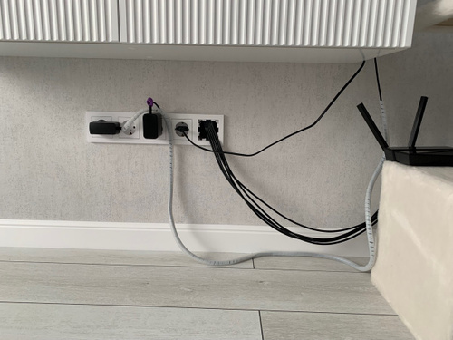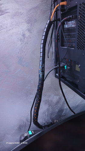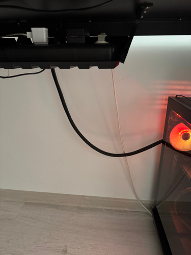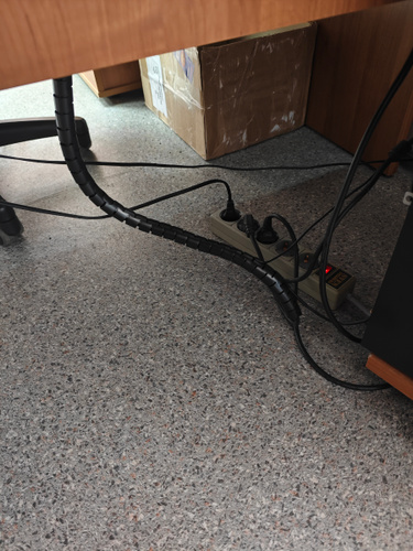 Также она позволяет сделать кабель менеджмент на вашем рабочем месте и использовать его как кабельканал, где удобно хранить проводку в одной обмотке без другого крепления, не захламляя стол шнурами от девайсов и аксессуаров.