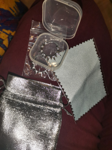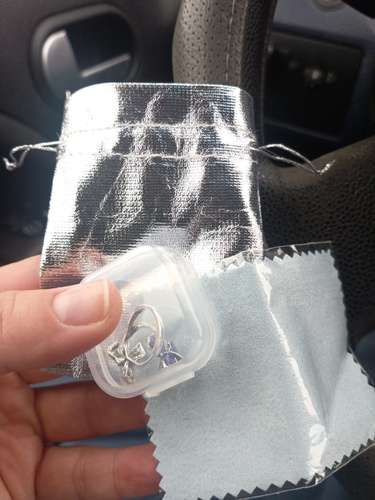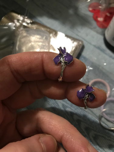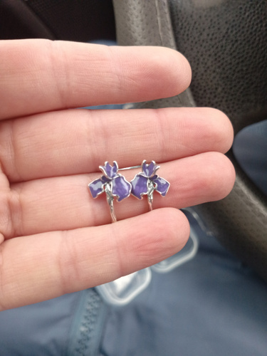 Чудесные серёжечки.Пришли хорошо упакованы,+подарочный мешочек серебристый+салфеточка+пришли в пластиковой коробочке и хип-хоп пакете.Фото прилагаю.Брала к броше ирис.Правда он гораздо крупнее и оттенок тёмно фиолетовый,не страшно я думаю).