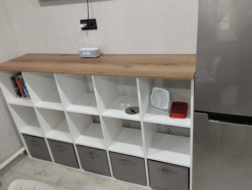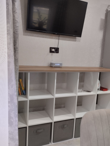 использовала в качестве столешницы на тумбу под ТВ. Полка хорошего качества, красивый цвет под дерево, приятная тактильно. Пришла без повреждений. Все отлично.