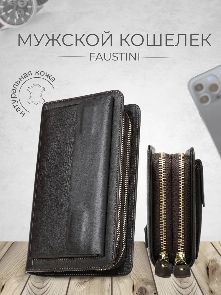 Кошелек мужской из натуральной кожи - 1 шт, ручка-хлястик-1шт