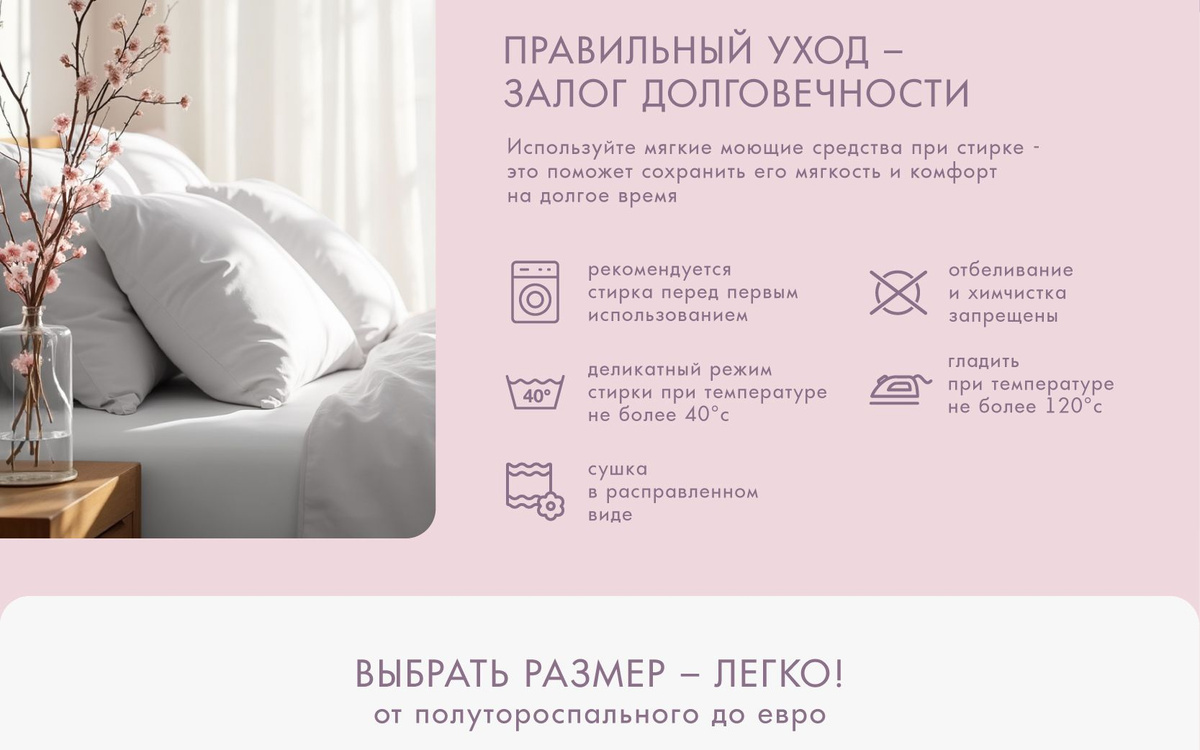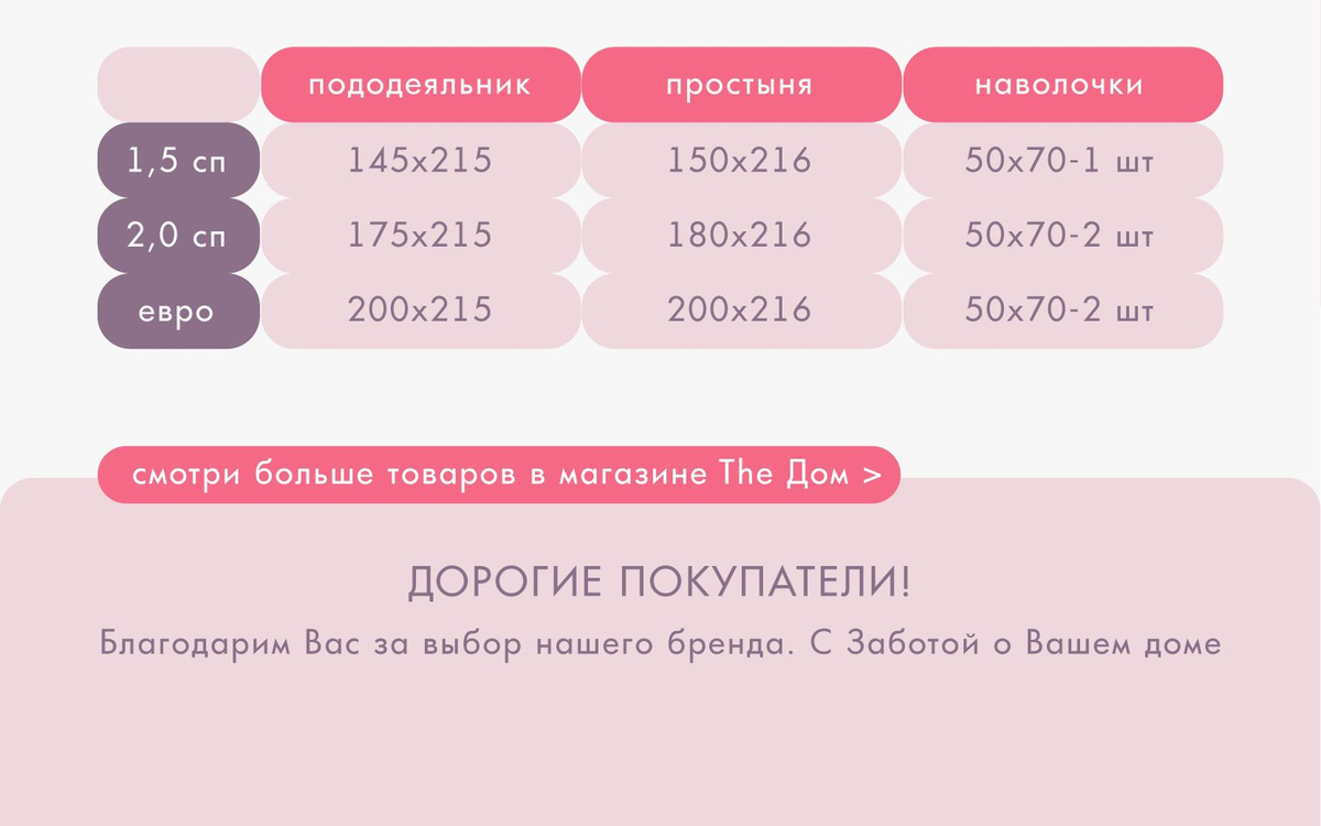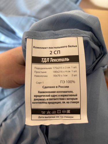 Такой КПБ включает в себя: простынь 180х216см+/-4см - 1шт, пододеяльник 175х215см+/-2см - 1 шт, наволочки 50х70см +/-1см- 2 шт.