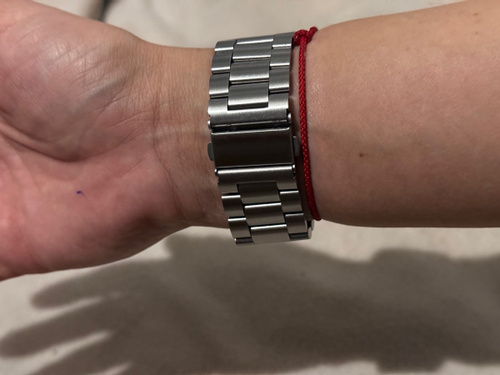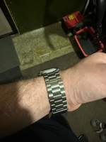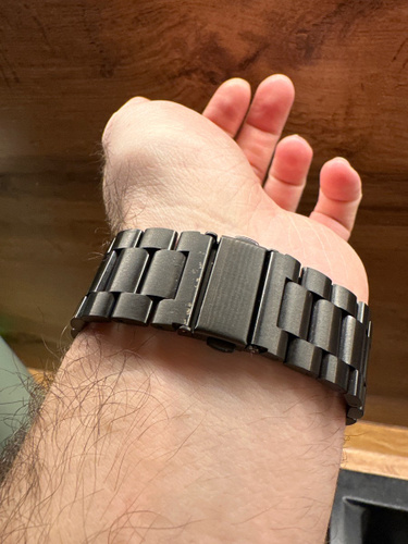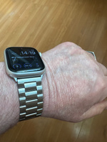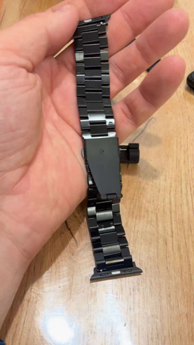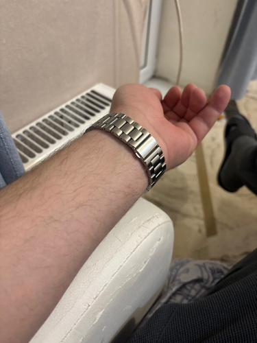 Классический металлический ремешок для умных смарт часов Apple Watch размером дисплея 40мм 41мм 42 мм станет стильным дополнением к любому образу. Изготовлен из нержавеющей стали с литыми звеньями, материал качественный и приятный на ощупь. Надежная сталь, из которой изготовлен ремень для часов Apple Watch 40mm, не вызывает аллергических реакций, что делает браслет безопасным и комфортным в носке. Стальной браслет на Эпл вотч 42 mm удобно сидит на руке и не мешает функциональности. Ремешок для Apple Watch 41mm имеет прочную и надежную застежку типа "бабочка", аккуратно складывающуюся внутрь браслета. Она исключает случайное расстегивание, но позволяет при желании быстро открывать и закрывать ремень для часов Эпл вотч 40 mm одним нажатием. Вы можете быть уверены, что ремешок для часов Apple Watch не расстегнется случайно. Регулируемые звенья позволяют легко подогнать браслет для часов под обхват вашего запястья, подойдет как для мужчин, так и для женщин. Металлический блочный браслет для смарт-часов Эпл вот 41мм при необходимости можно мыть водой или протирать влажными салфетками. Универсальная конструкция делает его совместимым со всеми сериями Apple Watch: 1 / 2 / 3 / 4 / 5 / 6 / 7 / 8 / 9 / 10 / 11/ SE, Ultra и Pro.