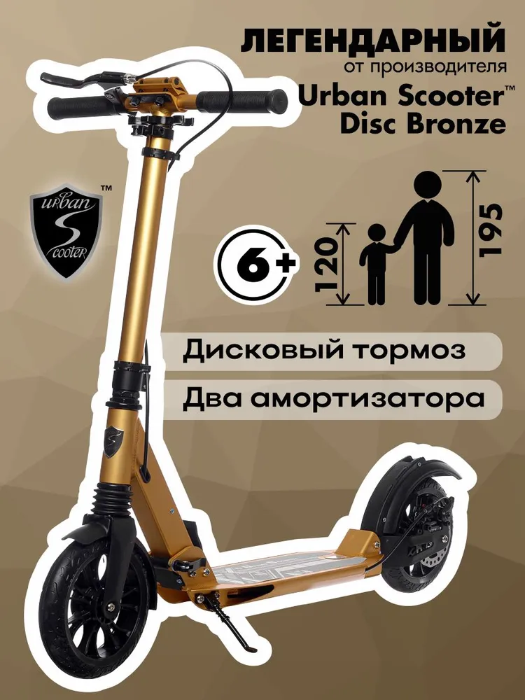 Отзывы о товаре 10538 Самокат Urban Scooter Disc Bronze, (2025), с дисковым тормозом, складной, городской, двухколесный