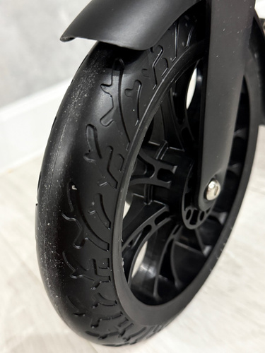 Все бы ничего, но восьмерка на переднем колесе, в результате чего передается сильная вибрация на все устройство, на видео хорошо видно, как весь самокат ходит ходуном, если положить руку на руль, вибрация хорошо ощущается. Заднее колесо плохо крутится, видимо к тормозу прижимается, ослабил больше некуда, все равно трется, может еще и можно настроить... Читать полностью