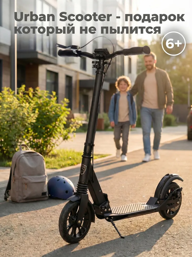 Самокат Urban Scooter Disc Black, (2025), с дисковым тормозом, складной, городской, двухколесный