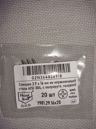 Нержавеющий саморез соответствует DIN 7981, ISO 7049, ГОСТ 11650.