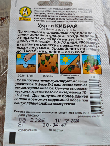 Среднеспелый сорт, от всходов до уборки на зелень 28-40 дней, на специи 70-80 дней. Высота растений в фазе цветения 150-180 см. Сорт отличается сильной облиственностью растений и высокими товарными качествами зелени. Розетка листьев приподнятая, формирует 10-12 крупных, сочных, очень ароматных, нежных листьев со слабым восковым налетом. Урожайность зелени 2,2 кг/м2. Используется для потребления в свежем виде и для консервирования на зиму– сушки, засолки, и на специи.Посев семян в открытый грунт на глубину 1-1,5 см. Чтобы получать зелень в течение продолжительного времени, семена высевают несколько раз за сезон с интервалом 10-15 дней. Для получения более ранней зелени возможен подзимний посев – в конце октября-начале ноября. Растениям необходимы регулярные поливы, прополки, рыхления и подкормки