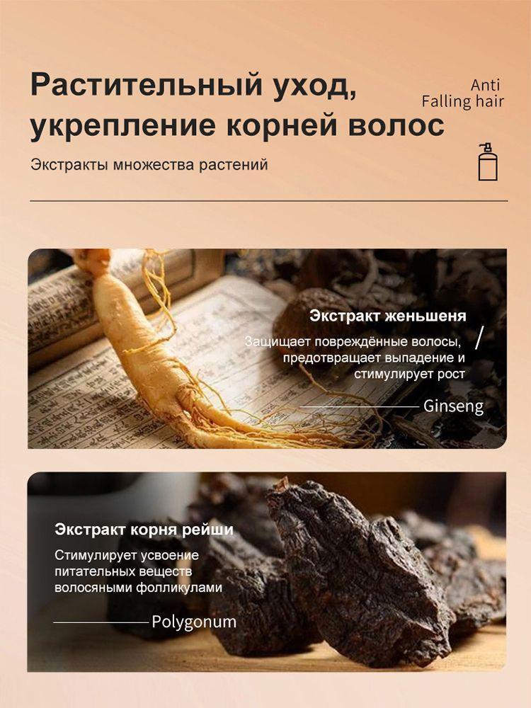 Способ применения 👉Полностью намочите волосы и кожу головы, затем нанесите небольшое количество шампуня, вспеньте легкими движениями. 👉Аккуратно помассируйте кожу головы подушечками пальцев в течение 2–3 минут для лучшего впитывания питательных веществ. 👉Тщательно смойте пену водой и промокните волосы полотенцем.