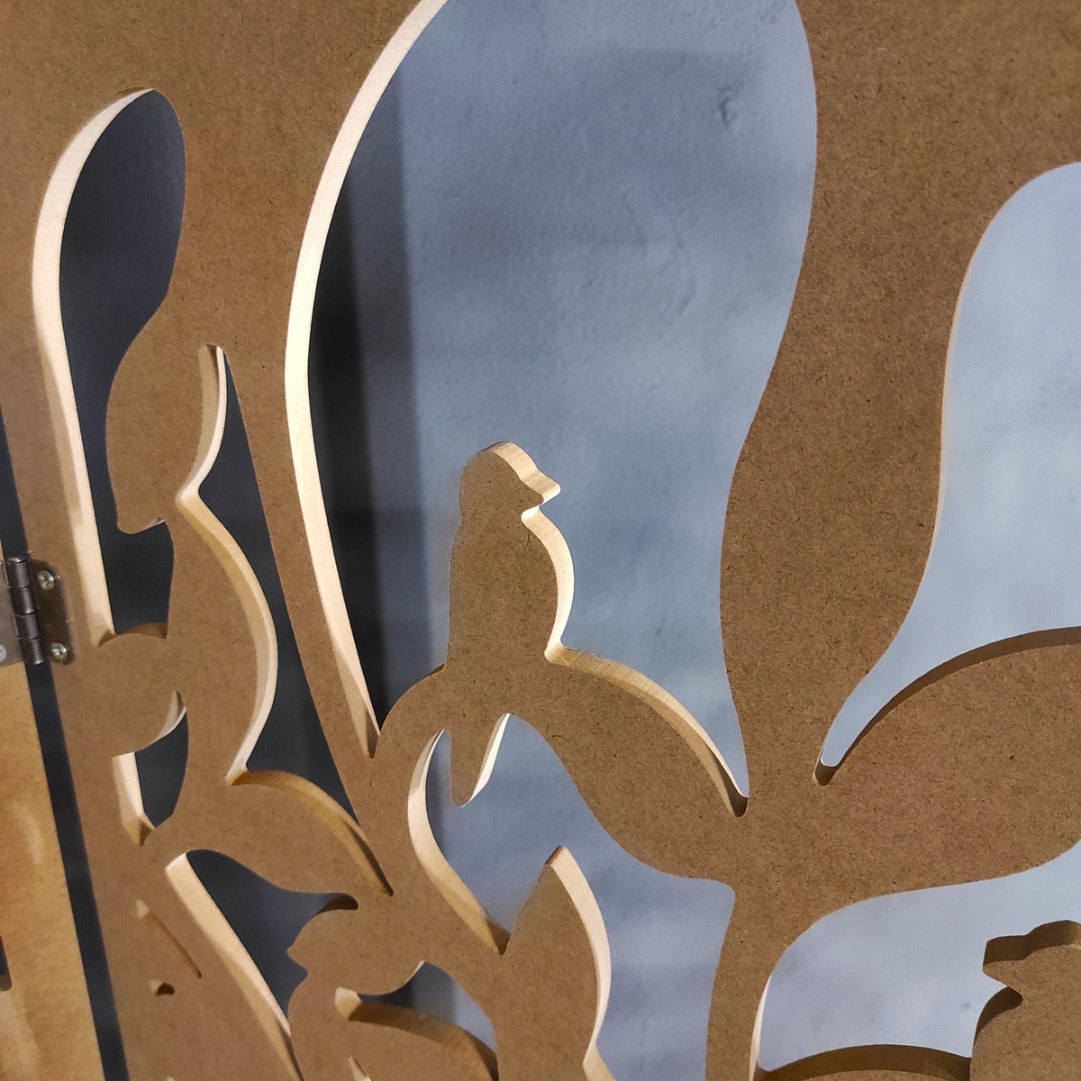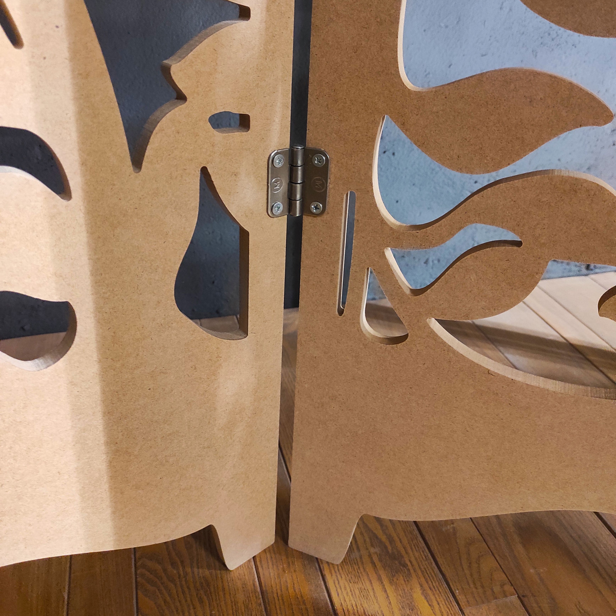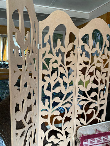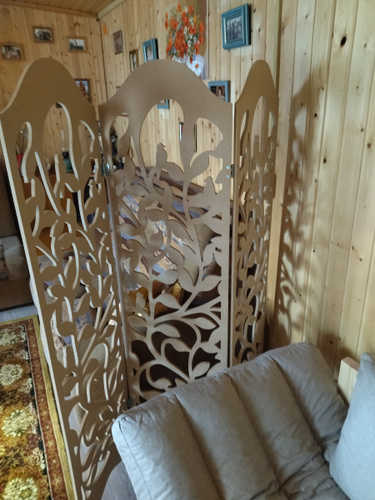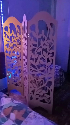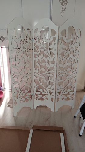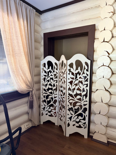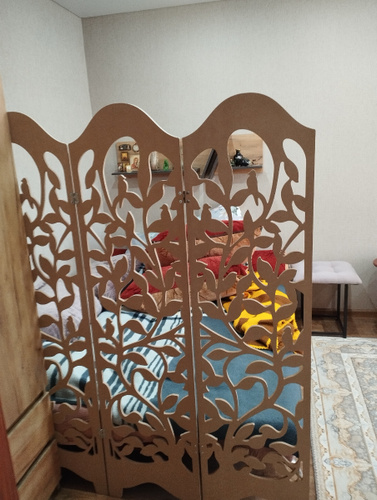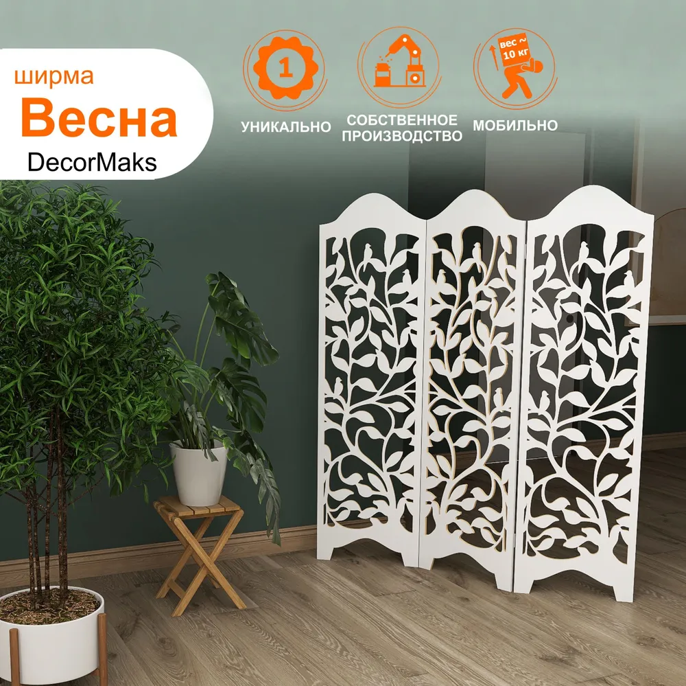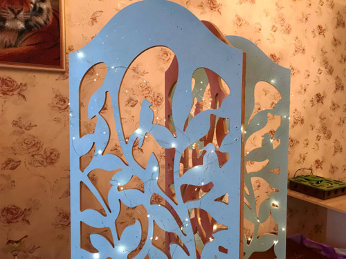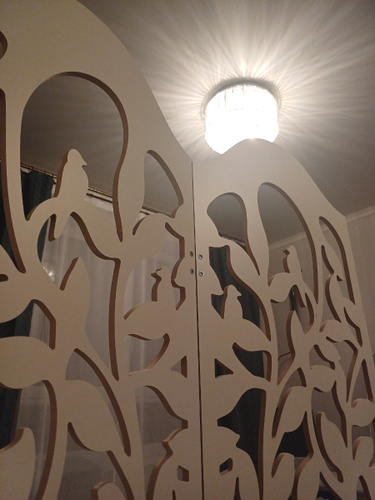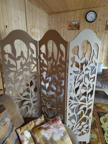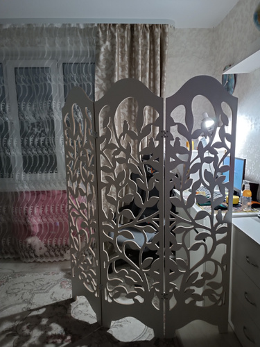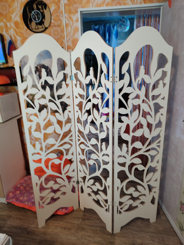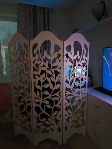 Ширма ажурная, 3 секции, материал белый ЛМДФ, где торцы и срез бежевого цвета. Размер каждого модуля 1600*412 мм. ВНИМАНИЕ ! Подсветка в комплект НЕ ВХОДИТ. На фото показан образец, как может выглядеть ширма с подсветкой. Отправляется в собранном виде.