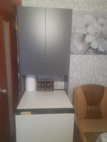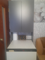 заказала на свой страх и риск этот чудо шкафчик. Почему страх и риск потому что в тихоря от мужа.Сама сняла размеры,сама подобрала в цвет кухни.Идея его приобрести была давно,но применить его немного по другому назначению.Нам ведь женщинам сколько не ставь шкафчиков их все мало.Вот так и у меня получилось.Очегь много кухонной техники и ставить её мне оказалось не куда. А тут созрел план икс использовать свободное место над морозильной камерой.Шкаф оказался просто супер,муж собрал его быстро и с улыбкой (опустим всё его возмущение)).А самое главное,что результат порадовал нас обоих.Нестала я ему сразу рассказывать,что еще один модуль на подходе .Пусть будет сюрприз.:-)).Шкаф рекомендую, очень хорошее качество,инструкция понятная.Большой плюс в данной модели,что вы можете сами регулировать расстояние между полками.Очень удобно .Пришло во время и без повреждений.Упаковано отлично.Пустые места заполнены бумагой,от повреждений.ПРОДАВЦА РЕКОМЕНДУЮ. Всем хороших покупок.