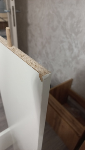 Небольшой скол одной детали, но место незаметное. Были трудности с петлями, одна из четырех с чересчур тугим доводчиком, долго не мог настроить, чтобы и ровно было, и закрывалось до конца. И евровинты для петель тугие, но с очень мягкой насечкой, насечка слезает раньше, чем закрутил нормально.