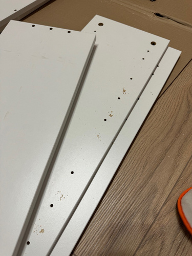 на самых видных местах сколы, трещины. ужас. странн было упаковано хорошо. шначит уже изначально отправили с браком.не стоит своим денег этот шкаф. Прислали CDEK испорченные боковины.Спасибо за обратные ответы. очень благодарна