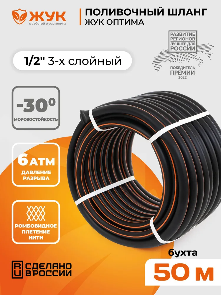 Шланг поливочный 1/2 Жук Оптима 3-х слойный (бухта 50 метров)