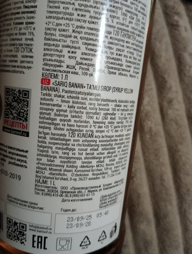 Хранить при температуре от 0°C до 25°C и относительной влажности воздуха не более 75%, избегая попадания прямых солнечных лучей. После вскрытия бутылки сироп хранить при температуре от +2°С до +25°С не более 120 суток. Допускаются: легкая опалесценция, наличие взвесей и осадка, а также наличие цветного кольца, обусловленные особенностями используемого сырья. Перед употреблением взболтать.