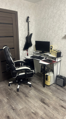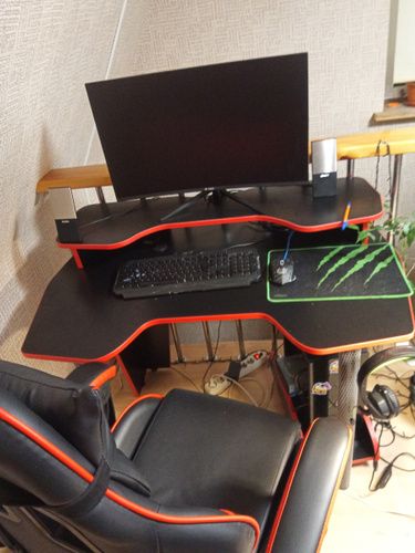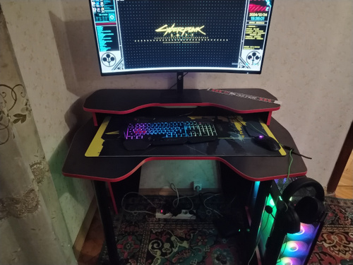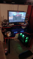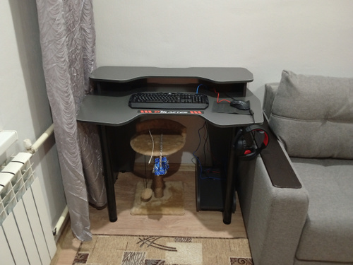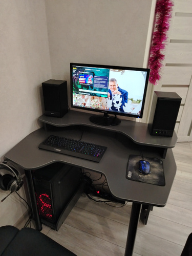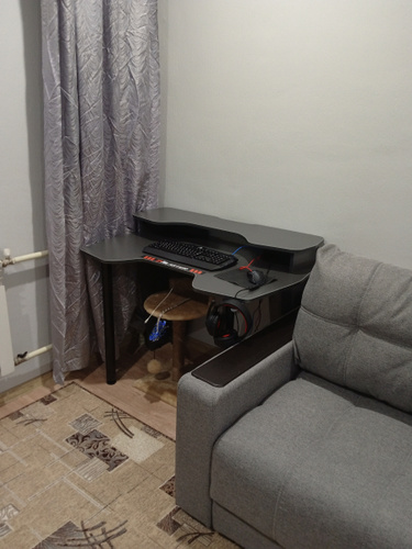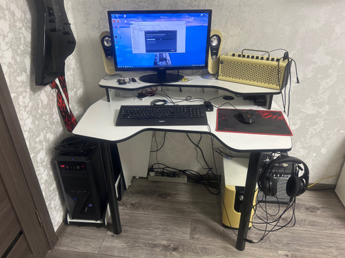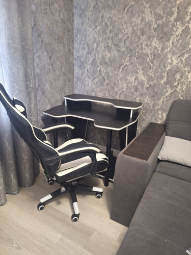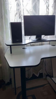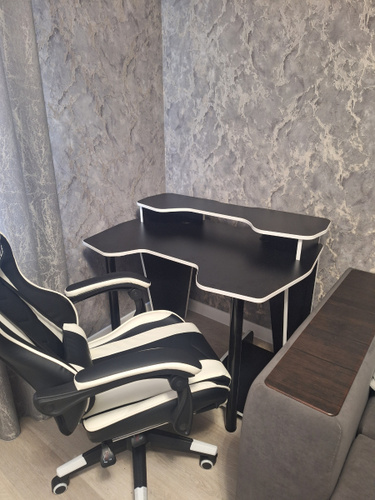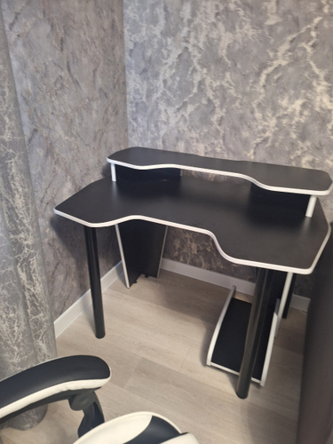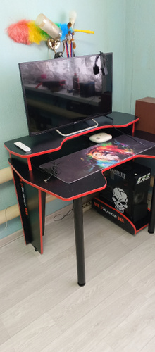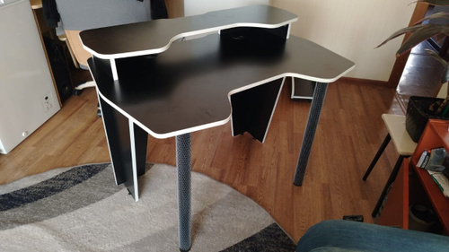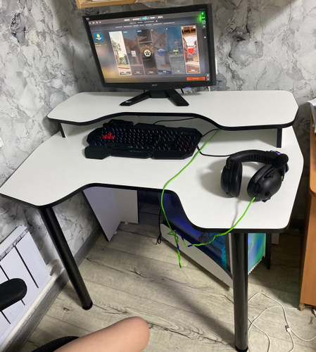 Удобная форма столешницы для игрового ПК позволяет полностью, с комфортом разместить руки на письменном столе и не держать локти на весу, что положительно влияет на длительность игровой сессии. Опоры игрового стола регулируются и позволяют выровнять столик на любой, даже неровной поверхности. На столешнице стола для игроков вырезаны специальные отверстия под провода, и закреплены две черные заглушки кабель-канала, что позволит грамотно организовать кабель-менеджмент. Каждая деталь игрового стола надежно завернута в подложку из пенополиуретана белого цвета. Стол для компьютера и подставка для блока приедут к вам в прочной коробке из пятислойного гофрокартона. Красивый дизайн и стильное цветовое сочетание. ЛДСП 16мм.