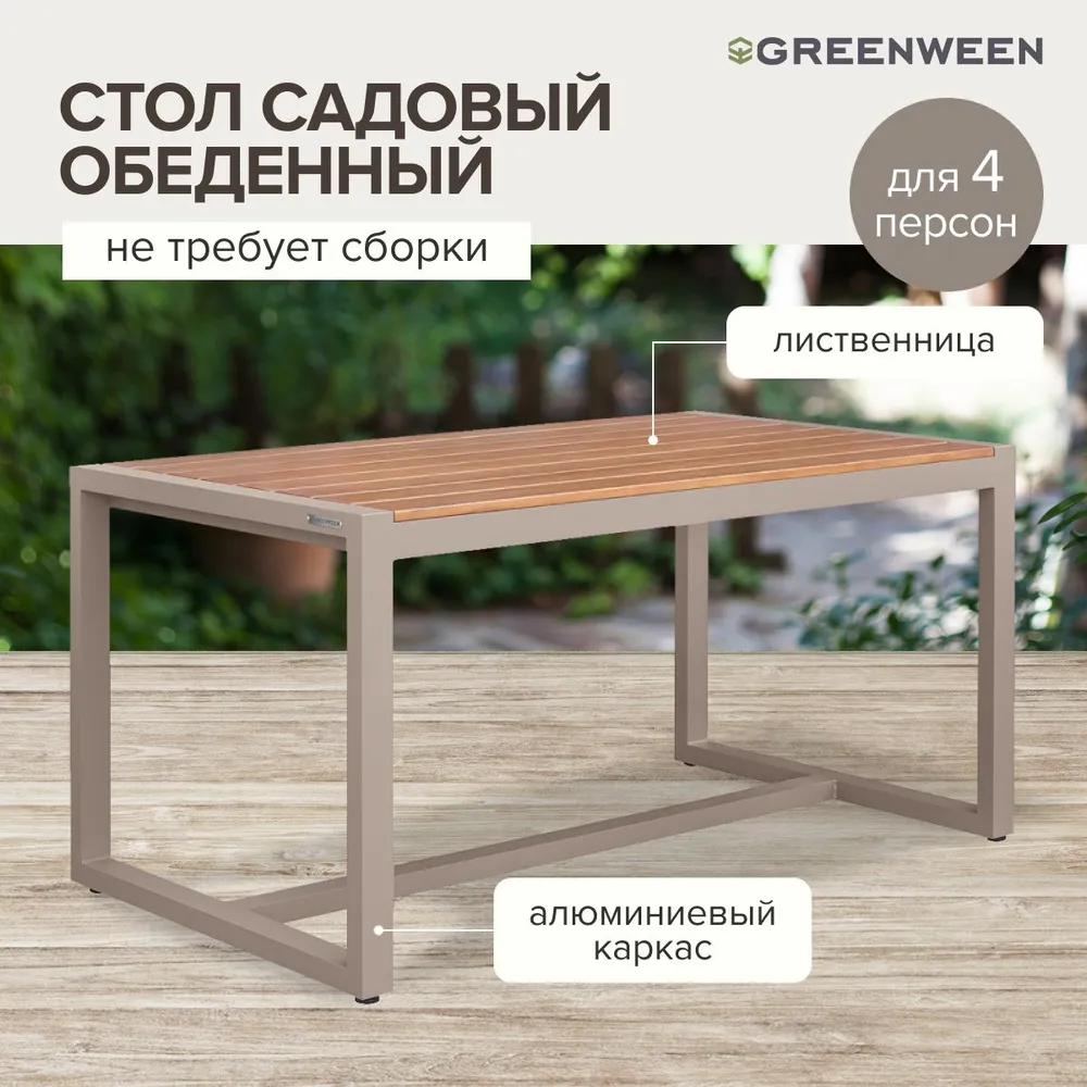 Каркас стола изготовлен из алюминиевой профильной трубы 60х40 мм. Металлическое основание с матовым полимерным покрытием отличается повышенной прочностью, устойчивостью к царапинам. Современное производство Greenween гарантирует надежность и эстетику сварных швов металлической мебели.