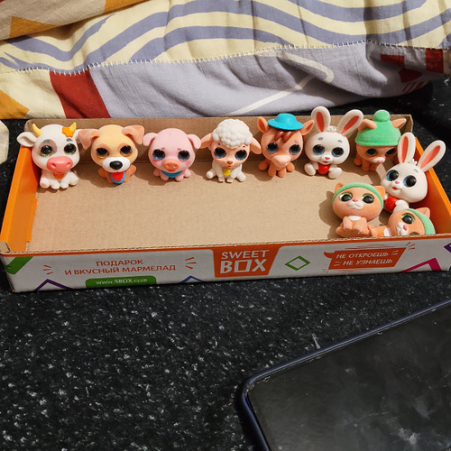 глюкозный сироп, сахар, концентрированные соки (яблочный, апельсиновый, клубничный, персиковый, манго), желатин пищевой, влагоудерживающий агент (сорбитовый сироп), стабилизатор (Е1420), регуляторы кислотности (лимонная кислота, яблочная кислота, E331), загуститель (агар), ароматизаторы, красители (куркумин, антоцианы, E141), комплексная пищевая добавка глазирователь (растительное масло, глазирователь - воск карнаубский, антиокислитель - альфа-Токоферол, регулятор кислотности - лимонная кислота).