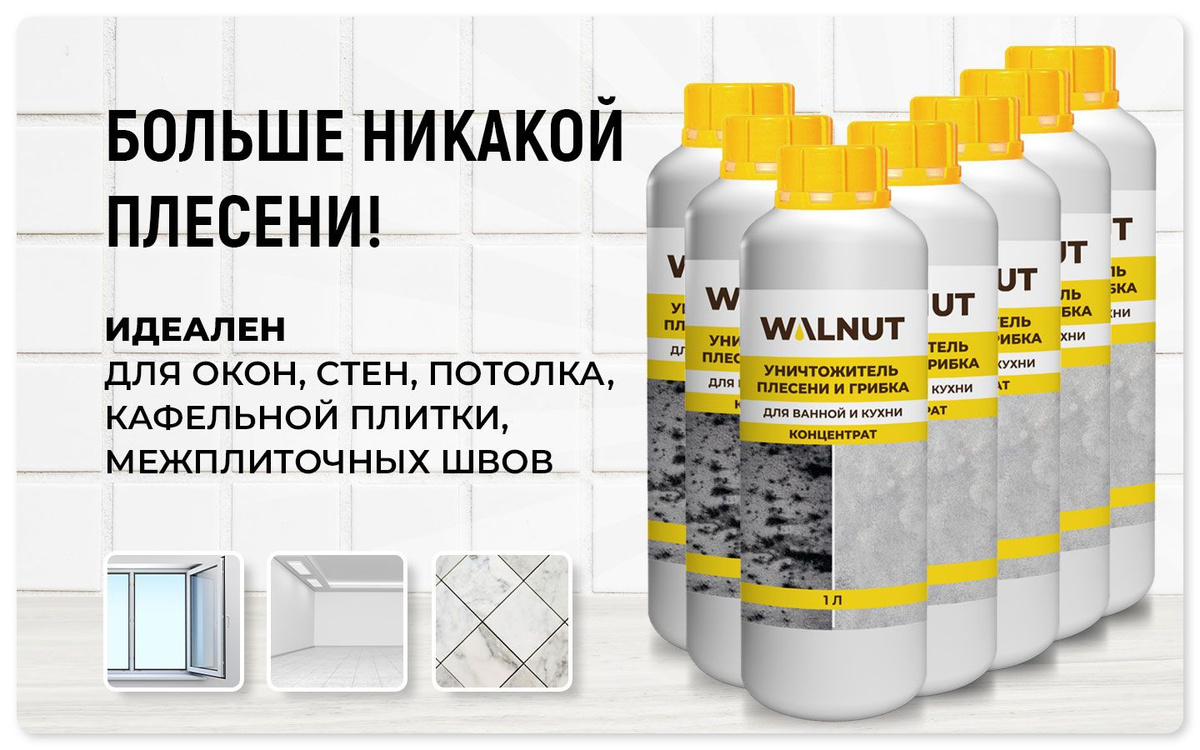 ОПИСАНИЕ ТОВАРАДля борьбы с плесенью и грибком, особенно в помещениях с повышенной влажностью, таким как ванные комнаты и кухни, необходимо использовать эффективные средства от плесени. Эти средства предназначены специально для уничтожения плесени на стенах, потолках, а также в межплиточных швах и других труднодоступных местах. Одно из наиболее популярных решений – это антиплесень, которая обеспечивает глубокое воздействие и способна устранить как серый, так и черный налет плесени и грибка. Формулы этих средств от плесени в ванной содержат специальные фунгициды, предотвращающие повторное появление плесени. Средства от плесени и грибка подходят для различных поверхностей: бетона, дерева, кирпича, камня, шифера и черепицы, а также для пластиковых окон и силиконовых герметиков. Для нанесения средства рекомендуется развести концентрат в воде в пропорции 1:1. Процесс применения довольно прост: для большинства поверхностей нужно нанести раствор, подождать некоторое время, затем очистить щеткой и смыть. Время ожидания зависит от степени загрязнения и может варьироваться от 15 до 60 минут. Для межплиточных швов и силиконовых герметиков время ожидания может быть меньше, что позволяет быстро устранять плесень. Также важно отметить, что средство может использоваться как для внутренних, так и для наружных работ. При работе с антиплесенью необходимо соблюдать предосторожности. Не рекомендуется наносить средство на акрил, хром и алюминий. В случае попадания на эти поверхности, нужно смыть его сразу же в течение 1-2 минут. Также избегайте попадания на кафель, поскольку возможно появление разводов, а на дереве возможно осветление оттенка. В комплект входят несколько средств от черной плесени в ванной, которые делают процесс лечения плесени более удобным. И не забудьте протестировать средство в незаметном месте перед его основным использованием, чтобы избежать неожиданных результатов.