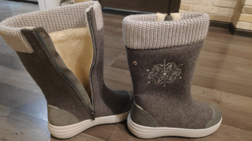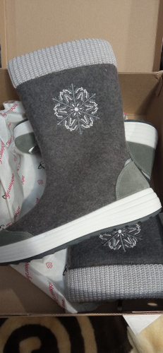 Это не валенки, это произведение искусства, я в них влюбилась как только увидела, но на мой 37 размер ,37 размер производителя оказался маловат, перезаказала на 38 и вот он с тёплым носочком, прям в самый раз. Огромное спасибо производителю и продавцу за такой красивый, качественный товар и Озон за возможность увидеть и купить эту прелесть.