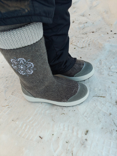 Валенки чудесные! Лёгкие, удобные. Взяла на один размер больше, чтобы одевать с тёплыми носками. Отзыв пишу через две недели эксплуатации. Не разочарована!