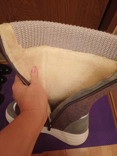 Сегодня только выкупила, рада безгранично! У нас стоят холода 35-40, поэтому очень ждала доставку. Пришёл товар без задержки, в отличии от унт. Между унтами и валенками, выбрала валенки. Очень мягкие, теплые, комфортные, просто сказка! Внутри толстый плотный мех, написано, что шерсть. Надеюсь теперь не буду мёрзнуть, так как в обычных валенках не рисковала... Читать полностью