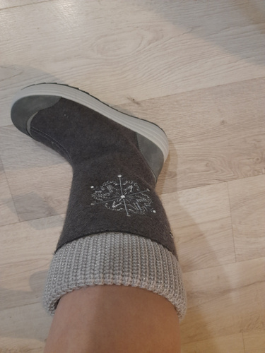 на вид симпатичные, на ноге тоже. но холодные, особенно правый. прям маркет и холодит..возможно брак попался не знаю. но по моему мнению валенки так не должны себя вести