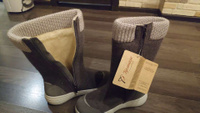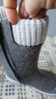 купила на два размера больше, чтобы носить с двумя тёплыми носками. симпатичные валеночки, походила по пункту, ногам удобно! вынимается за петлю стелька, под ней войлок. на полную икру нормально, не давит, не жмёт. рада этой покупке!