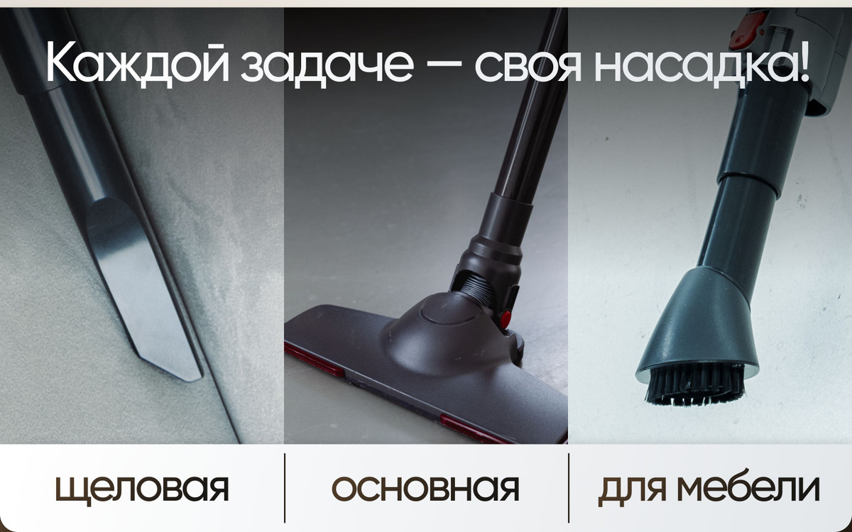 1. Трубка - 1 шт; 2. Щелевая насадка - 1 шт; 3. Щетка - 1 шт; 4. Переходник - 1 шт; 5. Насадка для пола - 1шт; 6. Пылесос - 1шт; 7. Шланг - 1 шт; 8.Крепеж для стены -1 шт; 9. Инструкция - 1шт;