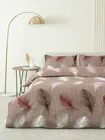 Постельное белье замечательное,не думала что за такие деньги будет отличный комплект.Приятный к телу.Постирала не полинял,не сел.