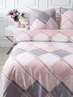 комплект красивый, ткань очень приятная как бархат но минус очень тонкая просвечивает надо белое одеяло