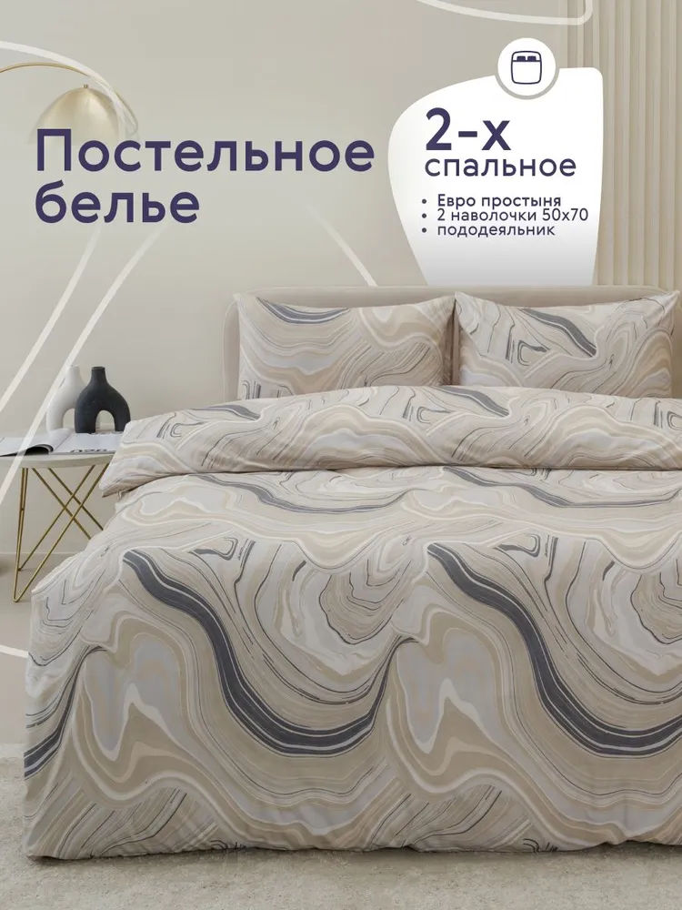 Вселенная текстиля Комплект постельного белья, Полисатин, Двуспальный с простыней Евро, наволочки 50x70 #1