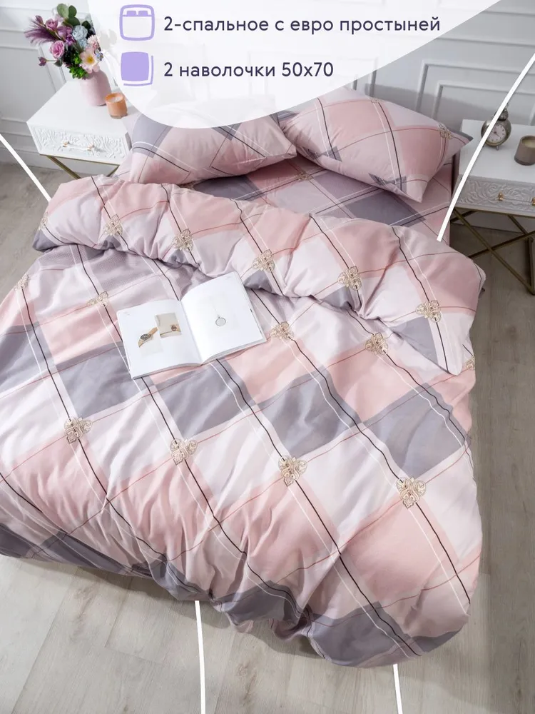 Вселенная текстиля Комплект постельного белья, Полисатин, Двуспальный с простыней Евро, наволочки 50x70 #1
