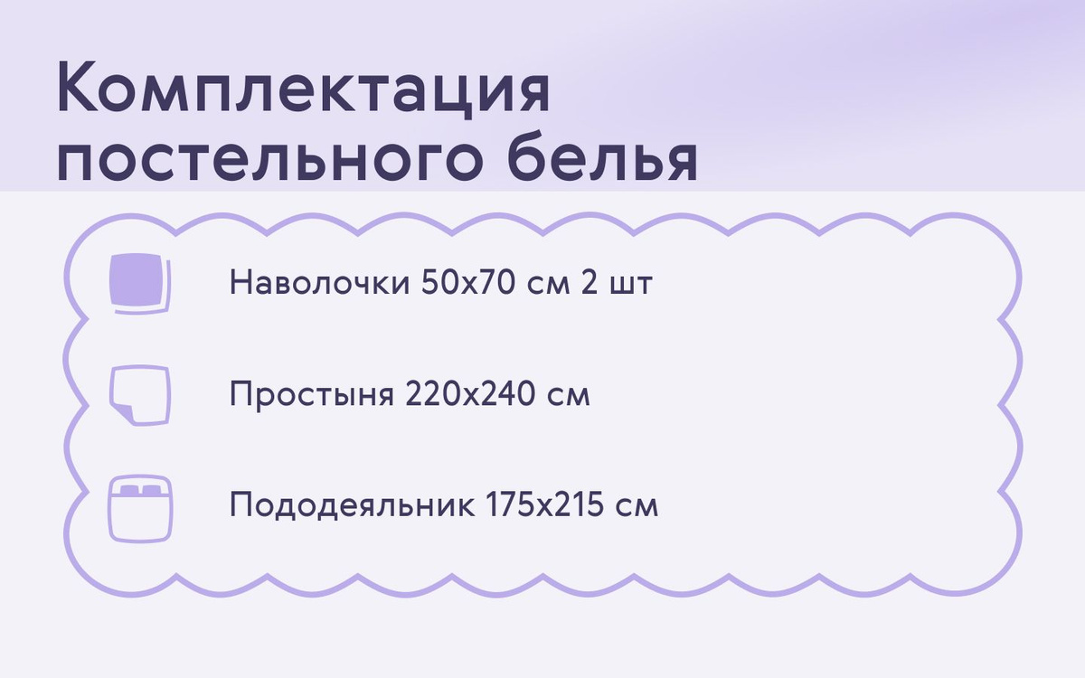 Подскажите пожалуйста комплектацию,в карточке товара и на фото,2 наволочки, пододеяльник и простынь.А в описании без пододеяльника